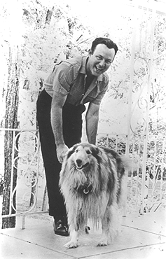 Jim enjoying the antics of his beloved collie Cheyene